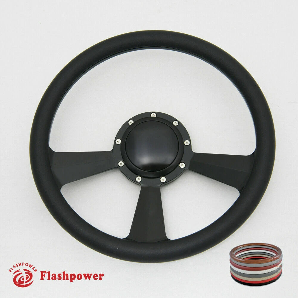 14'' Billet 9-Bolt Radiant Lenkrad Vollbezug Ford GM Cutlass Impala Chevy W/H