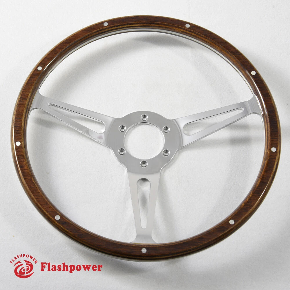14'' klassisches genietetes Holzlenkrad Restauration Mustang Shelby AC Cobra