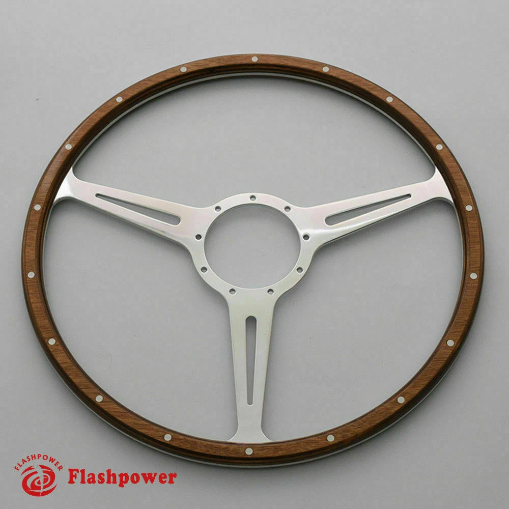 14" klassisches, genietetes Lenkrad in Holzoptik für MGB Midget mit Hupe