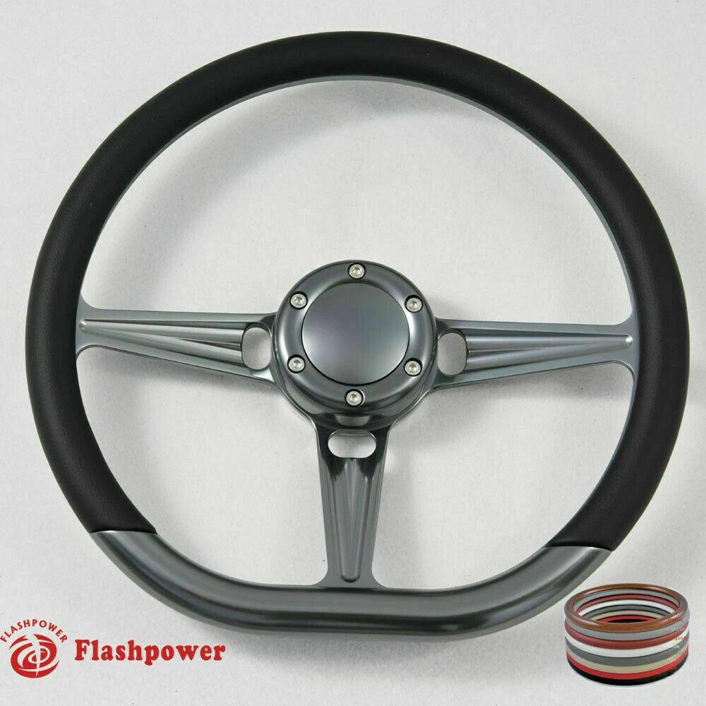 14'' Gun Metal Billet Tanson VI Steering Wheel Caprice S10 Chevy GMC W/Horn