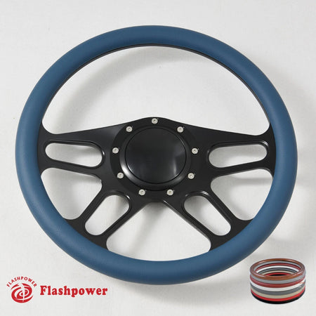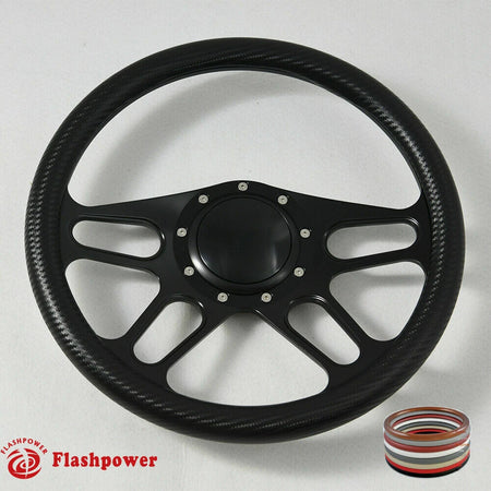 14'' Billet 9 Bolt Trickster Steering Wheels Half Wrap GM Fury Belvedere GTO with Horn Button Black