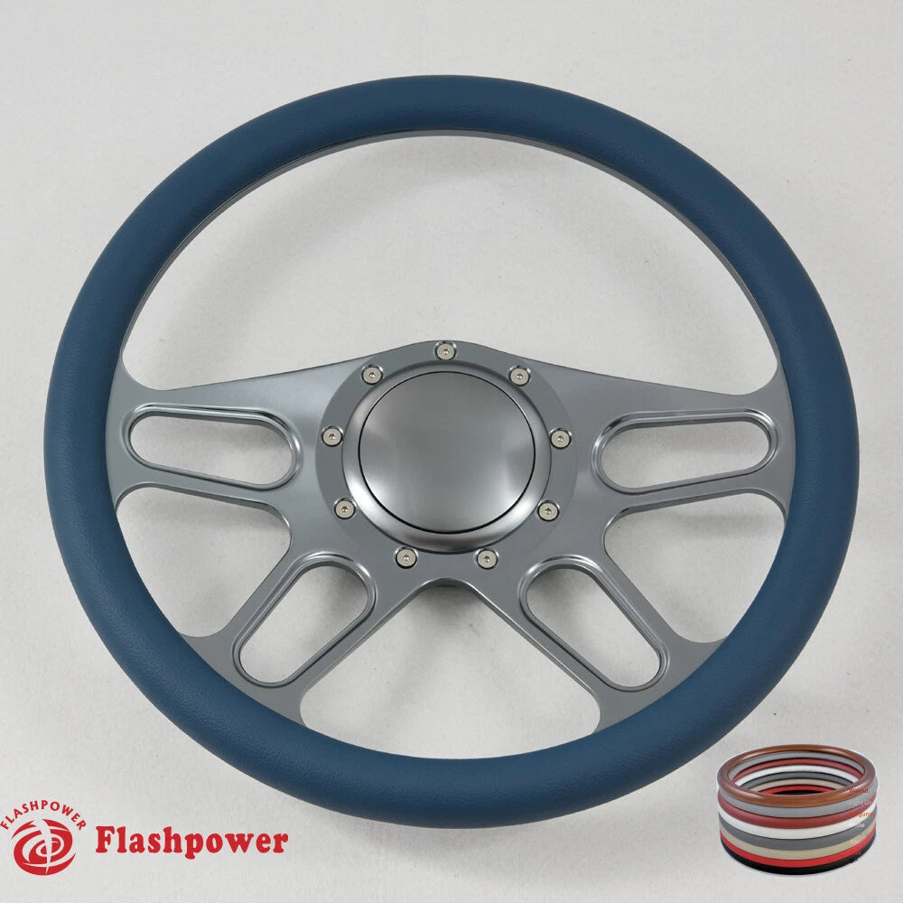 (1) 14'' Billet steering wheel + (1) Billet Small Horn button #121804G