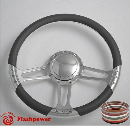 14'' Billet Steering Wheels Wrap Impala Wrangler YJ Cherokee Jeep w/Horn