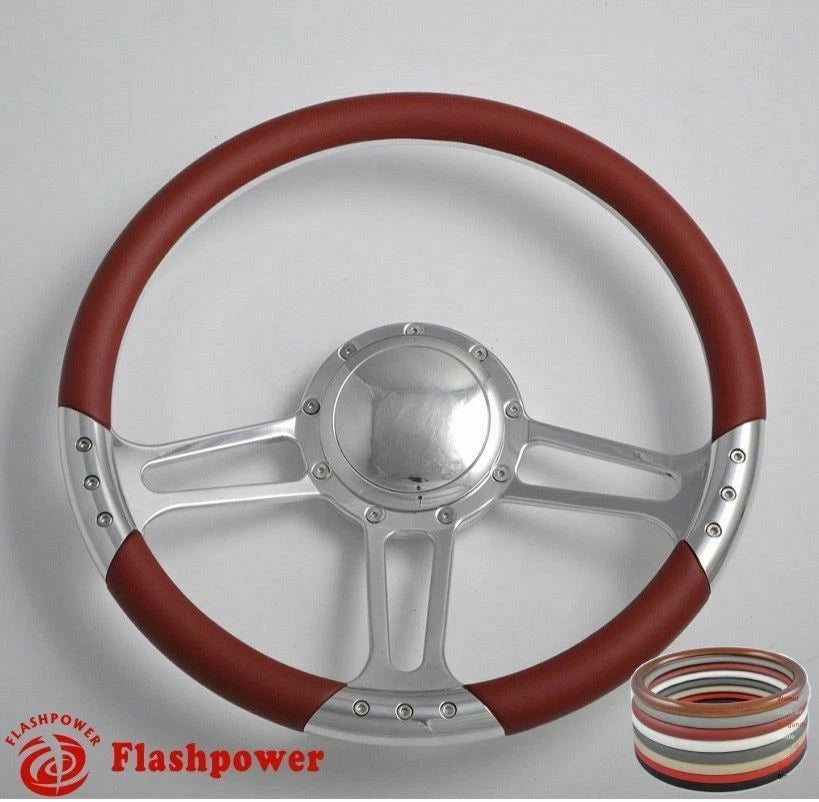 14'' Billet Steering Wheels Wrap Impala Wrangler YJ Cherokee Jeep w/Horn
