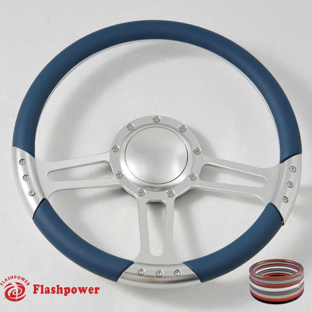 14'' Billet Steering Wheels Wrap Impala Wrangler YJ Cherokee Jeep w/Horn