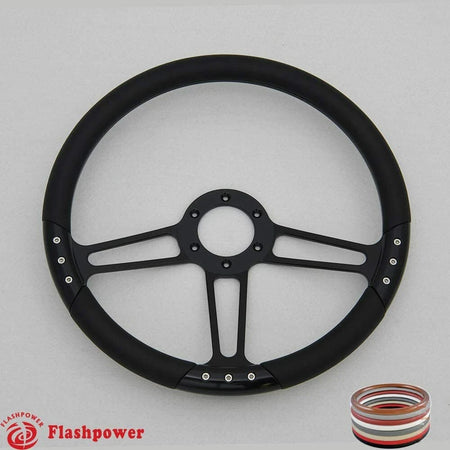 (1) 14'' Billet steering wheel + (1) Billet Horn button #121814B
