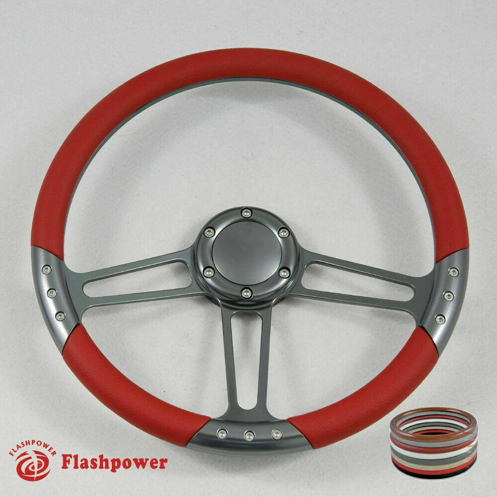 14'' Gun Metal Billet Steering Wheel Half Wrap GM Impala C10 W/Horn