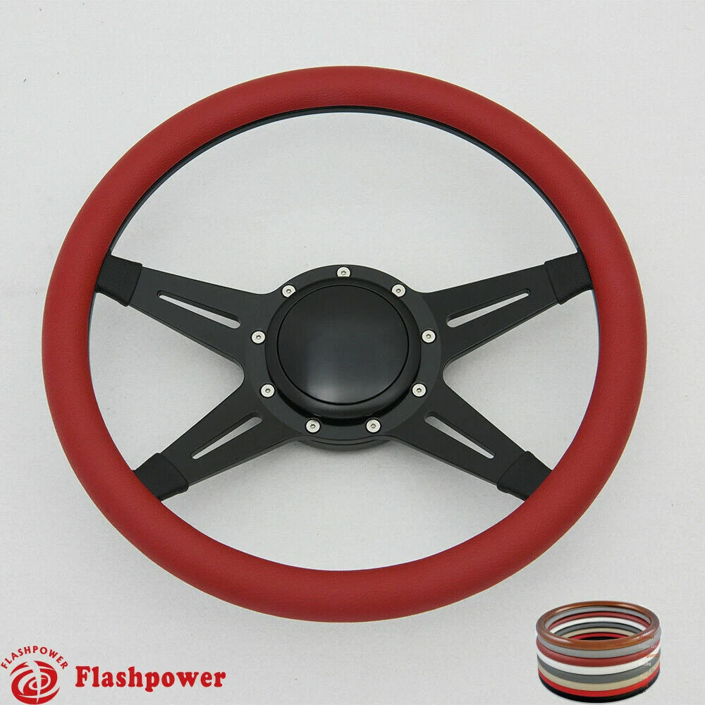 14'' Black Billet Steering Wheels Ford GM Corvair Impala Chevy II w/Horn