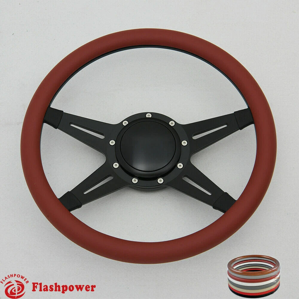 14'' Black Billet Steering Wheels Ford GM Corvair Impala Chevy II w/Horn