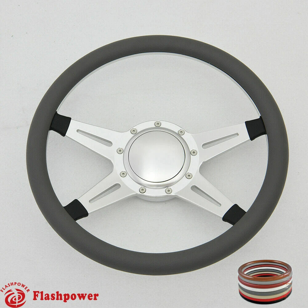14'' Billet Steering Wheel Full Wrap Ford GM Corvair Impala Chevy w/Horn