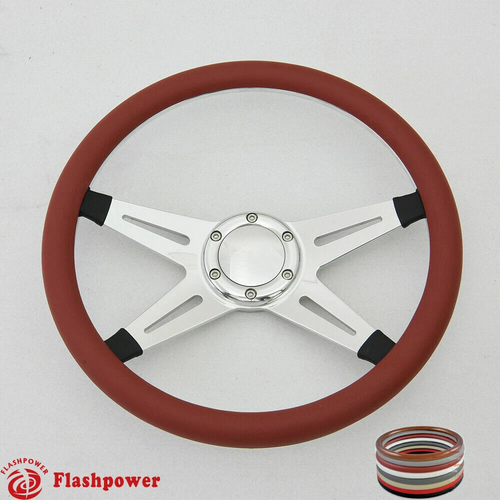 14'' Billet Steering Wheel Full Wrap Ford GM GTO Impala Chevy W/Horn