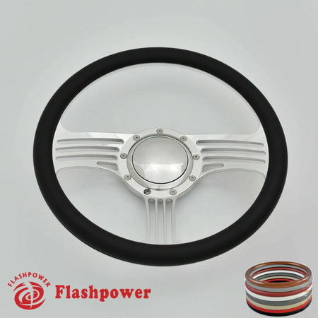 14'' Billet Steering Wheels Half Wrap Impala Chevy II Nova Chevelle w/ Horn
