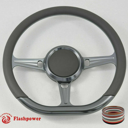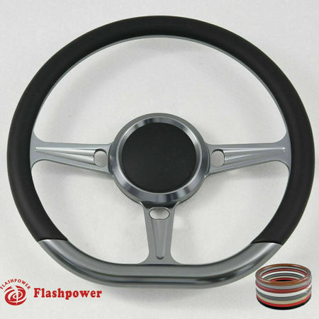 14'' Gun Metal Billet Steering Wheel Caprice GM S10 Blazer W/Horn