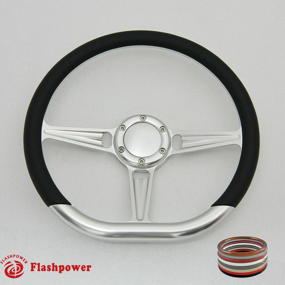 14'' D Type Billet Tanson VI Steering Wheel Half Wrap Muscle Car GMC W/Horn Button