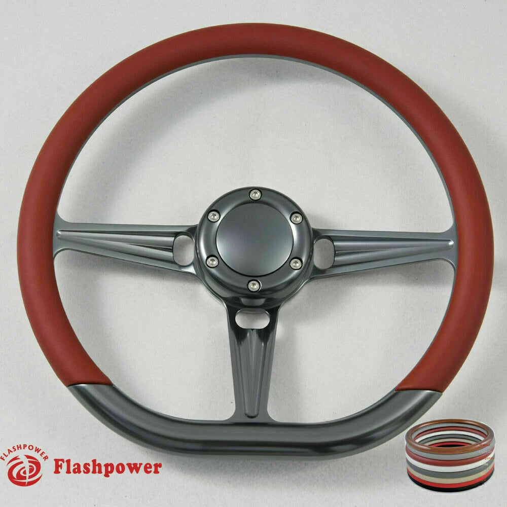 14'' Gun Metal Billet Tanson VI Steering Wheel Caprice S10 Chevy GMC W/Horn