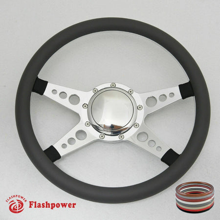 (1) 14'' Billet steering wheel + (1) Billet Small Horn button #121804A