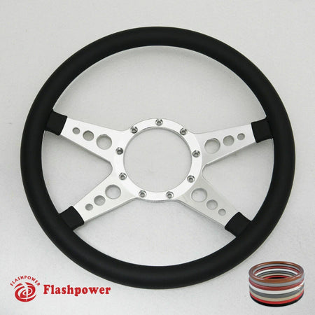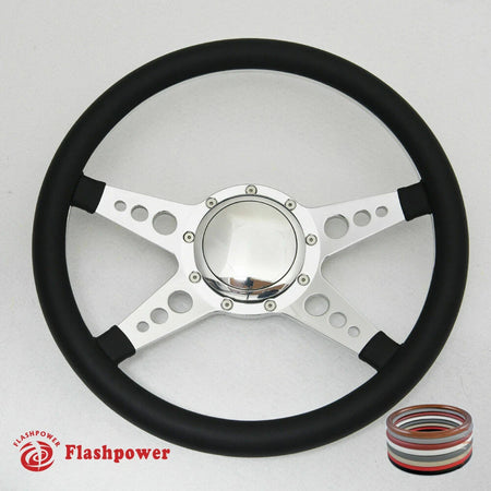 14'' Polished Billet Steering Wheel Full Leather Wrap Catalina Blazer