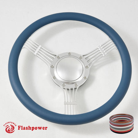 15.5'' Flashpower Satin Banjo Steering Wheels Half Wrap Restoration Chevy