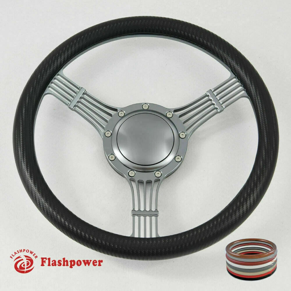 15.5'' Gun Metal Billet Steering Wheel Ranger GM Chevy Impala W/Horn