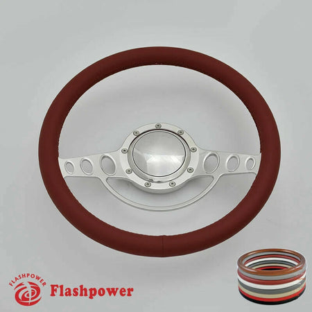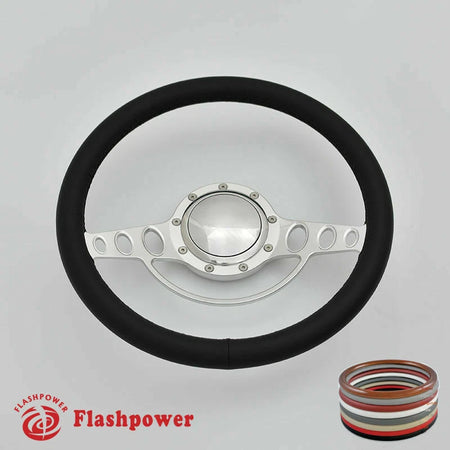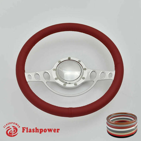 15.5'' Polished Billet Steering Wheel With Full Leather Wrap Horn Button