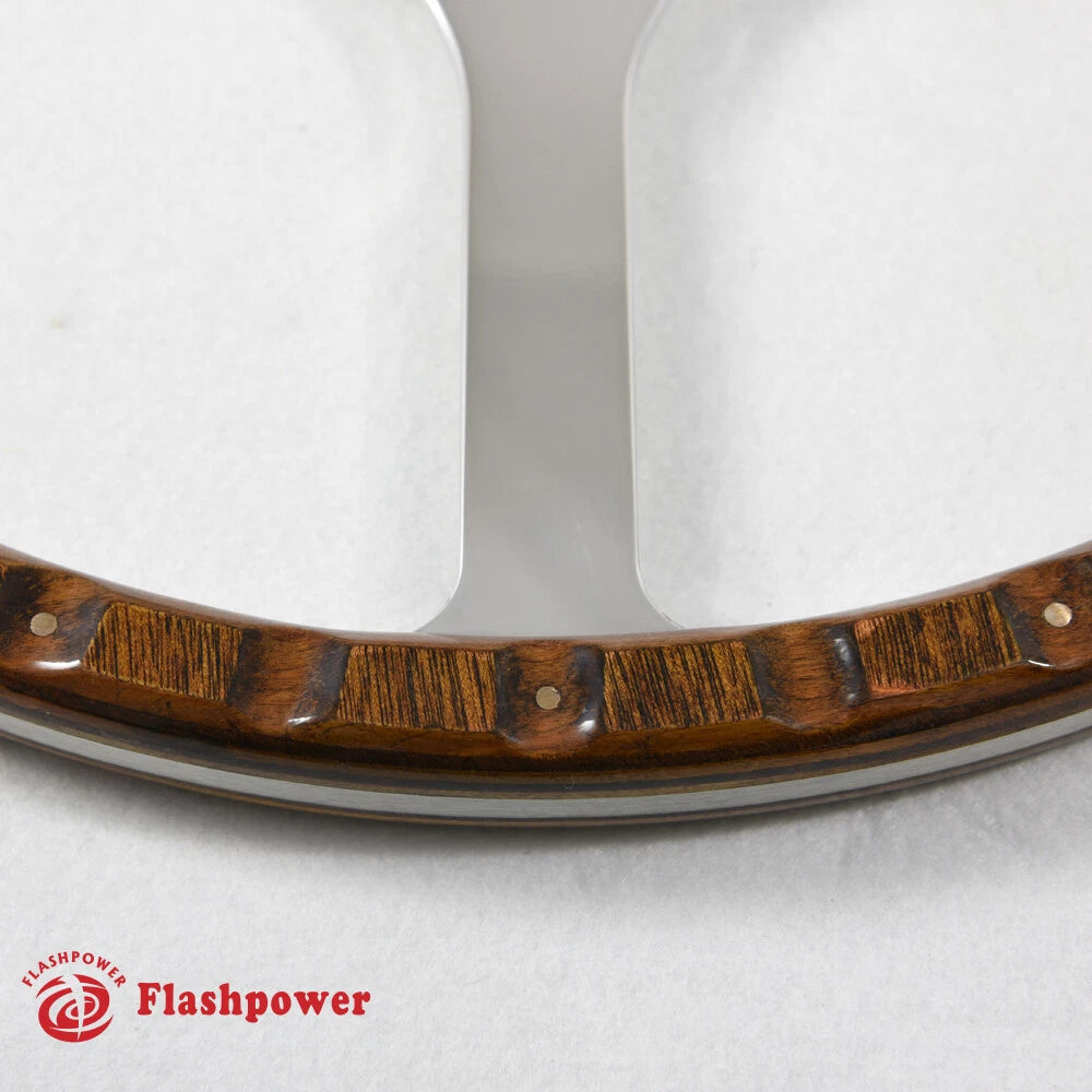16" Classic Riveted wood steering wheel horn button MGTriumph Jaguar Marine Boat
