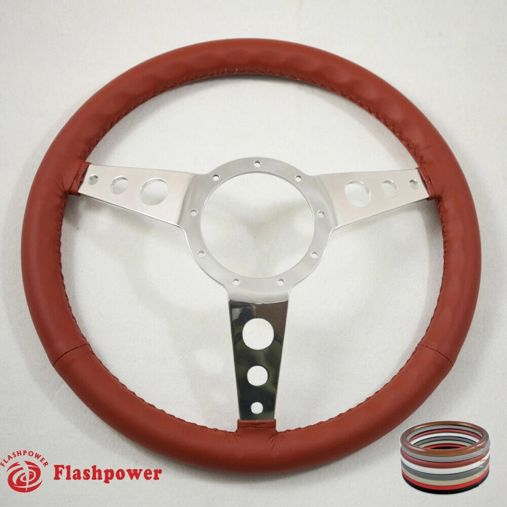 15" Polished Classic Burgundy Wrapped Steering Wheel 9 bolt with Horn Button