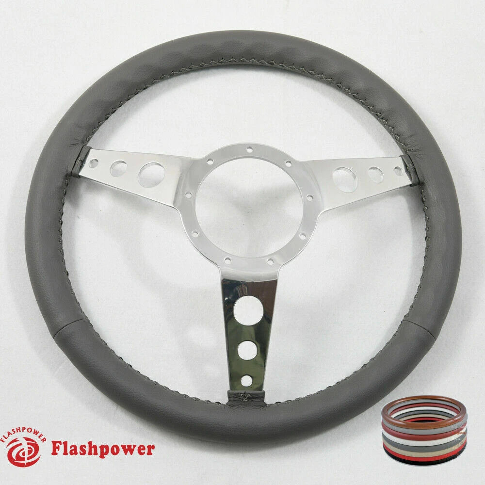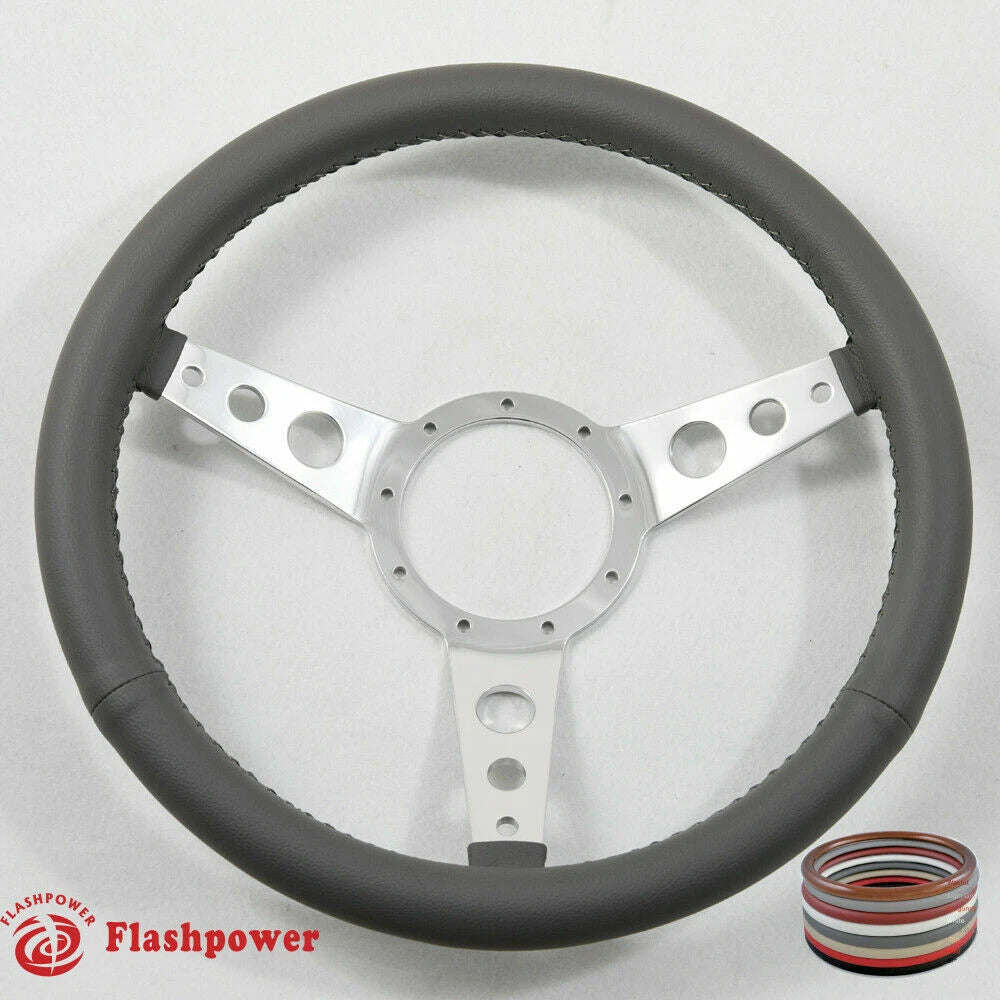 15" Polished Classic Dark Gray Wrapped Steering Wheel 9 bolt with Horn Button