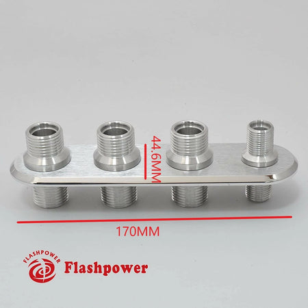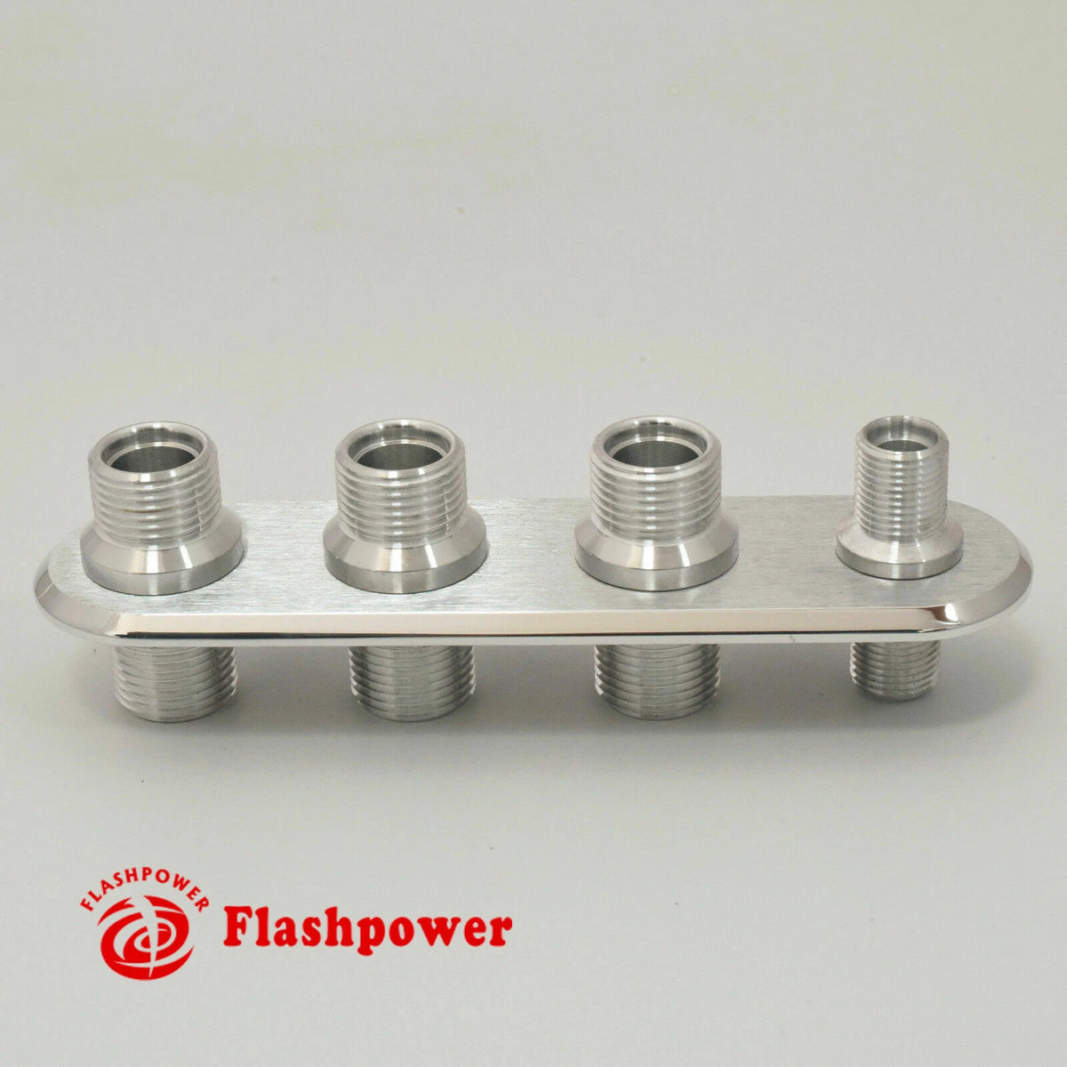 You are bidding on a Billet Aluminum 4 Ports Bulkhead 1 -6( 5/8"-18) Heater Hose Fitting and 3 -10(7/8"-14) Heater Ports.