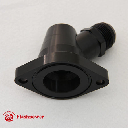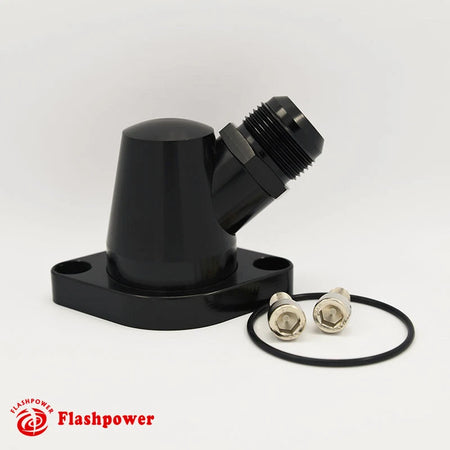 FlashPower Chevy Small/ Big Block Swivel Thermostat Housings are machined from 6061-T6 Billet Aluminum and are available in multiple configurations of 1.5” 1.25” and 16 AN Hose Connections. Flash Power utilizes an o- ring seal to the intake, no gasket needed.