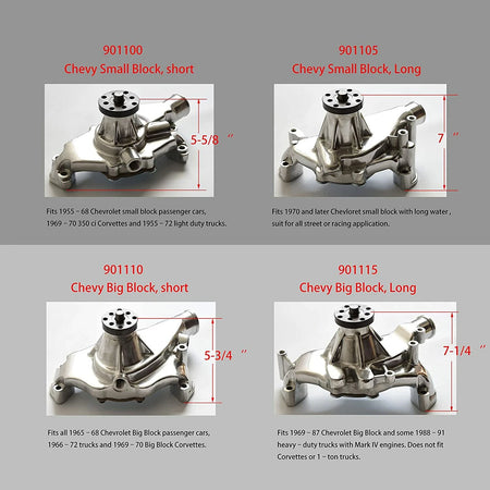 Fits Chevloret small block with short water ,suit for all street or racing application.